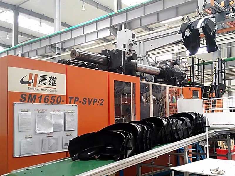 Jilin Eyaletindeki bir müşterimiz, prestijli Volkswagen markası için Tier-1 tedarikçisi olarak sürekli olarak tam otomatik modda çalışan, İki Plakalı SM1650-TP Enjeksiyon Kalıplama Makinelerimizden otuzdan fazlasına sahip. SM1650-TP’miz, Nippobatta AI-12 sistemi tarafından kontrol edilen SVP/2 Servo-Drive tarafından desteklenmektedir. 1.250 gramlık atış ağırlığına sahip iki boşluklu sisteme 1.650 tonluk bir sıkma kuvveti uygulanıyor. Çevrim süresi yalnızca 65 saniyedir ve parçalar PP/PE-TD20 reçinesinden üretilmektedir.